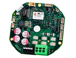 DerES-060-30/IPL60-15/IEL-60-15 Servoregler von Copley mit CANopen bzw. EtherCAT sind gedacht für die Montage an einem Motor z.B. in einem Robotergelenk; 80x80x20mm (abgerundet, Aussendurchmesser 89,4mm) bzw. 64mm, Mittelbohrung 10mm bzw. 20mm