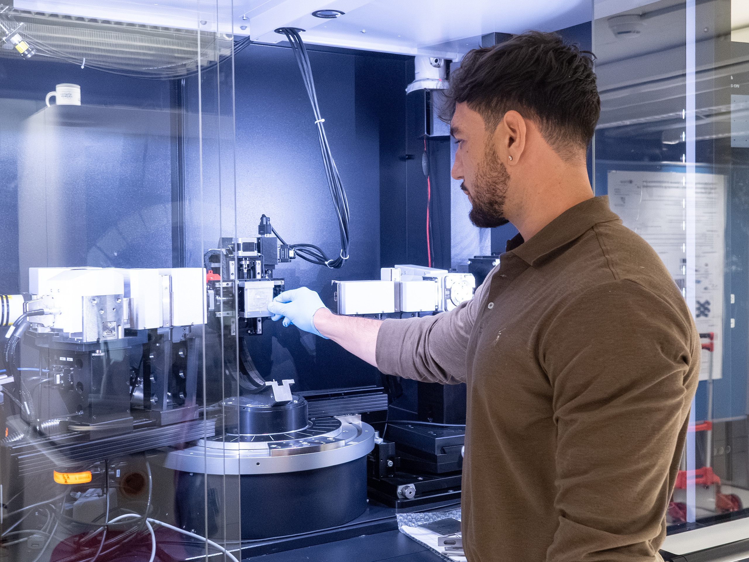 Empa-Forscher Damien Terebenec analysiert die Struktur metallischer Gläser in einem Röntgendiffraktometer.