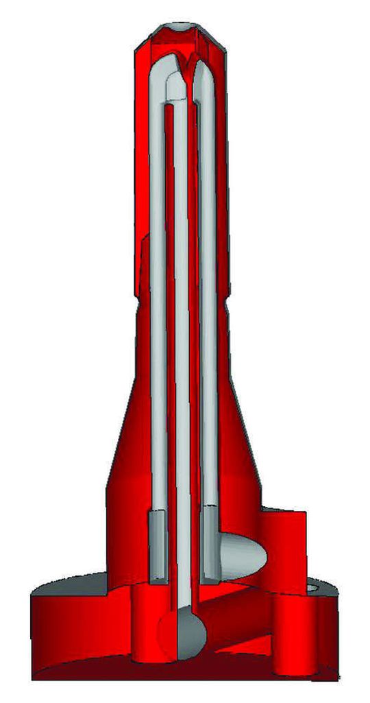 DMLS kann einen großen Beitrag dazu leisten, Zeit und Kosten in der Werkzeugherstellung zu sparen, weil die Technologie in vielen Fällen Fräsen und EDM ersetzt. Ein gutes Beispiel für ein relativ einfaches Projekt zeigt das Aufmacherbild. In diesem Fall sollten Werkzeugeinsätze für die Serienproduktion von zwei kleinen Kunststoffkomponenten aus Polycarbonat hergestellt werden. Trotz der Einfachheit wäre bei konventioneller Fertigung immer noch Senkerodieren nötig gewesen. Mittels DMLS wurden der Kern und die Kavität in nur 5 Stunden und 40 Minuten gebaut. Sie mussten nicht nachbearbeitet werden, nur Mikrostrahlen und leichtes manuelles Touchieren waren nötig. Der Kern und die Kavität wurden direkt auf die Spritzgussmaschine montiert und die Produktion konnte beginnen. Vom Beginn des Projekts bis zur Serienproduktion waren nur 6 Tage nötig.