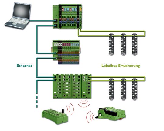 Um Signale auch kabellos übertragen zu können, hat Phoenix Contact ein IO-System auf Funkbasis entwickelt. Damit lassen sich temporäre Installationen wie Wechselwerkzeuge einfach in das E/A-System integrieren sowie kritische Schleifring- oder Kabelschlepp-Verbindungen ersetzen.