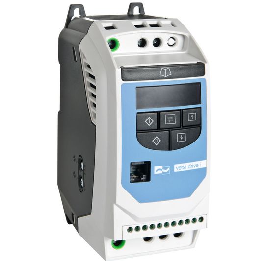Die VersiDrive i.../E2 bzw. /3E2-Umrichter verfügen über eine serielle Kommunikationsschnittstelle mit Modbus RTU sowie über potentialfreie Steuer- und Meldekontakte. Steuerung und Sollwertvorgabe sind aus der Ferne (über Klemmenanschlüsse) sowie über die Folientastatur-Bedieneinheit der Geräte möglich. Die Umformer sind 60 Sekunden lang für eine 150-prozentige Überlastung ausgelegt.