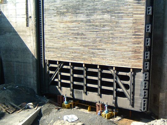 Um die Schleusenanlage besser Warten zu können, hat Columbus McKinnon Engineered Products eine spezielle Hubvorrichtung konstruiert und installiert. Die lineare Hublösung besteht aus vier hochpräzisen und erprobten Schwerlast-Spindelhubelementen SHE 100.1 der Marke Pfaff-silberblau. Sie heben und senken das rund 200 t schwere Schleusentor um 700 mm – mit einer Abweichung von weniger als 0,1 mm.