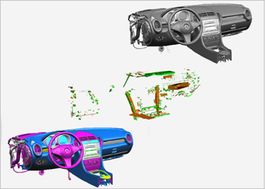 Das Modul 'difference-inVT' bietet zum Beispiel die Möglichkeit, über Nacht eine vollautomatische Berechnung des gesamten virtuellen Fuhrparks mit über 10 Millionen Bauteilen durchzuführen. Der Algorithmus ermittelt die Veränderungen der Produkte und die Ergebnisse stehen dem Anwender als 3-D-Geometrie zur Verfügung. Ebenso können auf Knopfdruck innerhalb von Sekunden zwei Bauteilstände miteinander verglichen werden. Nach der durchgeführten Berechnung werden alle Stellen, die eine Geometrieänderung aufweisen, als 3-D-Modell angezeigt. Bei der Auswertung sieht der Experte sofort, ob die Anpassung relevant ist und er weitere Schritte veranlassen muss.