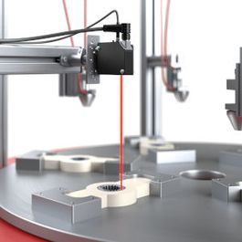 Die Taster der Reihe PT64 bieten innerhalb ihrer gerätespezifischen Messbereiche jeweils eine Lösung mit Laserpunkt und Laserlinie. In dieser Applikation wird ein Gerät mit Laserpunkt eingesetzt, das den Abstand der eingepressten Bauteile von oben erfasst. Zur Kompensation von Montageungenauigkeiten wird der Sensor über den integrierten Taster anhand eines maßhaltigen Referenzteils in der Anlage geteacht.