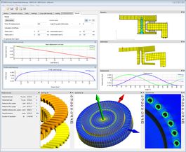 Die Berechnungssoftware für Axial-/Radial-Rollenlager berücksichtigt Deformationen der Lagerringe über eine Finite-Elemente-Berechnung. Die Bauteilgeometrie der rotationssymmetrischen Bauteile kann vom Anwender über einen Polygonzug definiert werden. Eine beliebige Anzahl von Axial- und Radial-Zylinderrollenlagern sowie Kreuzrollenlagern können definiert werden und die Schraubenvorspannung eines Schraubenringes wird berücksichtigt. Belastungen können entweder auf Flächen oder an einzelnen Punkten definiert werden. Zur Bestimmung von Steifigkeiten ist eine Serienberechnung mit Variation der Lasten möglich.