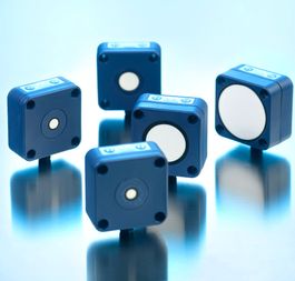 Die lcs+-Ultraschallsensoren haben ein quaderförmiges Gehäuse aus Kunststoff mit vier Befestigungsbohrungen.