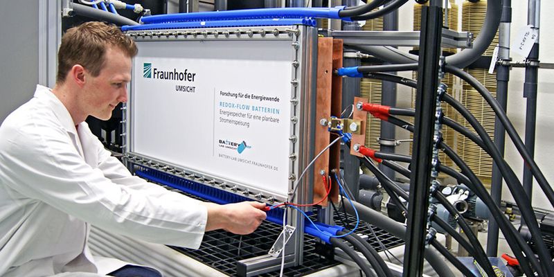 Forscher des Fraunhofer-Instituts für Umwelt-, Sicherheits- und Energietechnik Umsicht in Oberhausen konnten nun die Größe der Stacks und damit die Leistungsfähigkeit deutlich erhöhen. Dank eines neuen Designs ist es ihnen gelungen, Stacks mit 0,5 m² Zellgröße zu fertigen. Das ist achtmal größer als die bisherigen Systeme und entspricht einer Leistung von 25 kW. Diese Batterie präsentieren die Wissenschaftler auf der Hannover Messe 2013 am Fraunhofer-Stand der Allianz Energie. Der Prototyp hat einen Wirkungsgrad von bis zu 80 % und kann mit Strömen von maximal 500 A belastet werden.