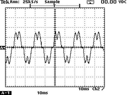 Wie die Grafik zeigt, verläuft der Strom in den gesteuerten Phasen in gleicher Weise, erkennbar am Summenstrom in der ungesteuerten Phase, die zwei gleichförmige „Höcker“ aufweist. Die Hüllkurve, welche letztlich für den Gesamt-Drehmomentverlauf verantwortlich ist, bleibt gleichmäßig. Und der Rundlauf des Motors entspricht jenem des dreiphasig gesteuerten Softstarters, ohne aber dessen Kostenniveau zu erreichen.