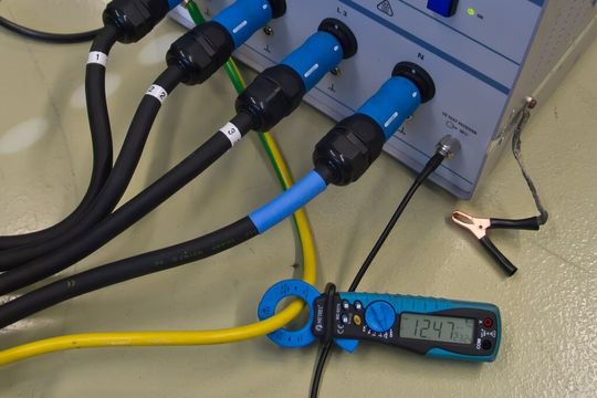 Es empfiehlt sich, bei jeder neu aufgebauten Maschine, den Ableitstrom zu messen. Die einfachste Methode ist es, den Strom auf dem Erdleiter mit einem Zangenamperemeter zu messen.