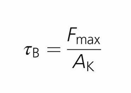 wobei τB die Klebfestigkeit und Fmax die Höchstkraft sind.